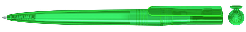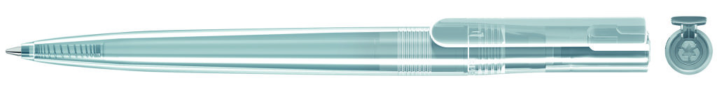 Drehkugelschreiber aus recyceltem rPET-Material mit transparent glänzendem Gehäuse. Das aus recycelten PET-Flaschen in Europa hergestellte rPET-Material eignet sich für einen langlebigen und nachhaltigen Werbeeinsatz. Dank der europäischen und klimaneutralen Produktion leistet der uma RECYCLED PET PEN switch einen zusätzlichen nachhaltigen Beitrag zur Schonung der Umwelt. Minenfarbe: blau