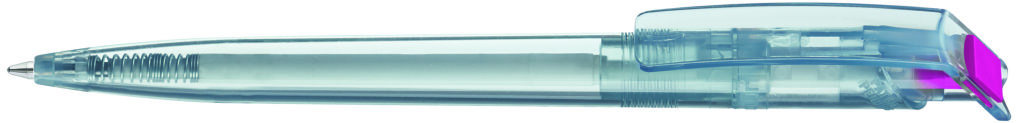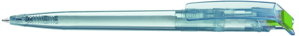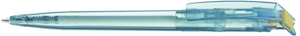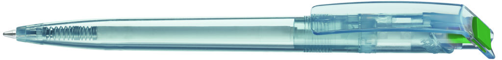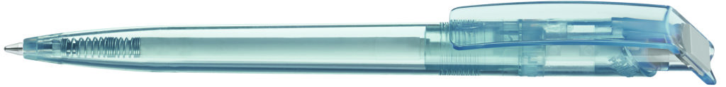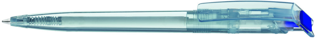 Druckkugelschreiber aus recyceltem rPET-Material mit klar transparent glänzendem Gehäuse und gedecktem Stopfen. Das aus recycelten PET-Flaschen in Europa hergestellte rPET-Material eignet sich für einen langlebigen und nachhaltigen Werbeeinsatz. Dank der europäischen und klimaneutralen Produktion leistet der uma RECYCLED PET PEN einen zusätzlichen nachhaltigen Beitrag zur Schonung der Umwelt. Minenfarbe: blau