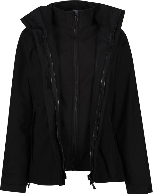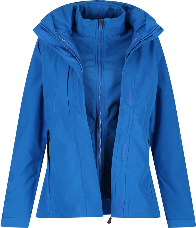 Damen 3-in-1 Stretch Jacke „Kingsley“, Taillierter Schnitt, dauerhaft wasserabweisende Beschichtung, wasserdicht (10.000mm Wassersäule), atmungsaktiv (10.000g/m² in 24h), verstellbare Ärmelbündchen mit Klettverschluss, Windschutzblende mit Klettverschluss, 2 Seitentaschen und 1 Brusttasche mit Reißverschluss, Nähte versiegelt, Veredelungszugang im Futter, 3 Tragevarianten, 40° waschbar, nicht trocknergeeignet, nicht chemisch reinigen, Innenjacke: wärmende Innenseite, 2 Seitentaschen mit Reißverschluss, Material: 160g/m², 100% Polyester, Stretch Gewebe mit DWR Imprägnierung, Futter: Netz, Polyester Taft, Innenjacke: Softshell, Größen: 10_S,12_M,14_L,16_XL,18_XXL,20_3XL