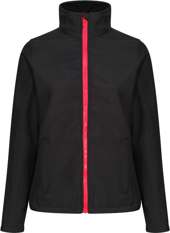 Damen 2-Lagen Softshell Jacke „Ablaze“, Wasserabweisendes Material, Reißverschluss mit Kinnschutz, 2 Seitentaschen mit Reißverschluss, Futter in Kontrastfarbe, spezielle Garnstruktur ohne Elasthan für gute Bedruckbarkeit und Elastizität, weicher Griff, schnelltrocknend, winddicht, 30° waschbar, nicht bügeln, nicht trocknergeeignet, nicht chemisch reinigen, Material: 265g/m², 100% Polyester, Futter: Fleece, PFC frei, Größen: 6_2XS,8_XS,10_S,12_M,14_L,16_XL,18_XXL,20_3XL,22_4XL