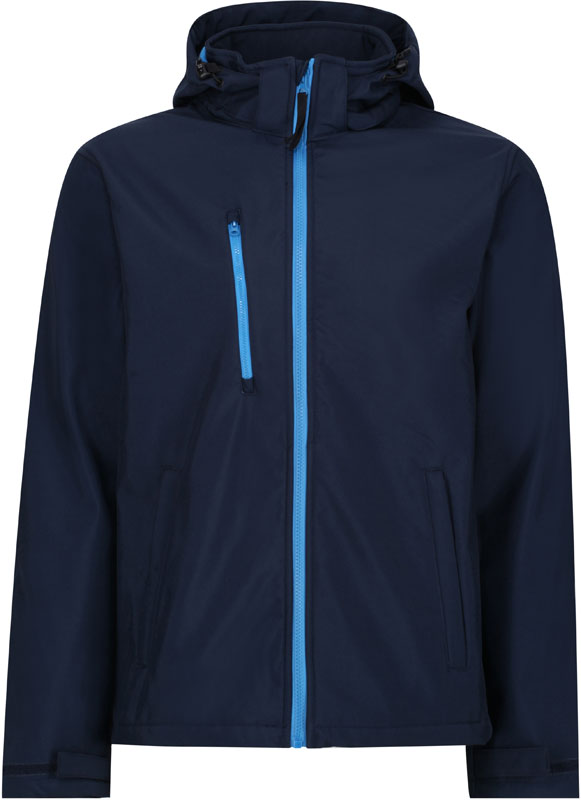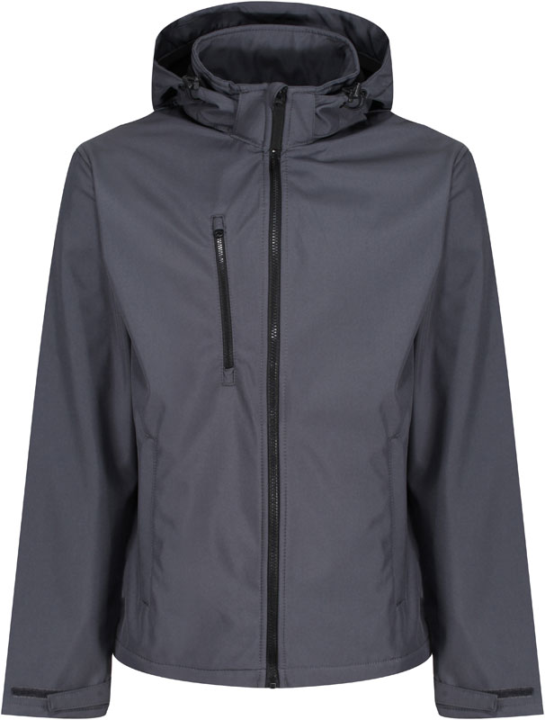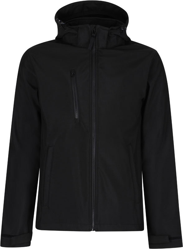 3-Lagen Kapuzen Softshell Jacke „Venturer“, Windbeständige Membran, wasserdicht, wasserabweisende Ausrüstung, atmungsaktiv, abnehmbare verstellbare Kapuze, elastische Ärmelbündchen, elastischer Bund mit Kordelzug, Napoleontasche, 2 Seitentaschen mit Reißverschluss, 30° waschbar, nicht bügeln, nicht trocknergeeignet, nicht chemisch reinigen, Material: 300g/m², 100% Polyester, enthält mindestens 30% recyceltes Polyester (rPet), PFC frei, Innen: Fleece, Größen: S,M,L,XL,XXL,3XL