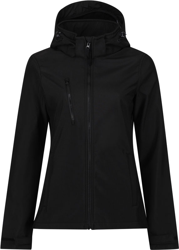 Damen 3-Lagen Kapuzen Softshell Jacke „Venturer“, Windbeständige Membran, wasserdicht, wasserabweisende Ausrüstung, atmungsaktiv, abnehmbare verstellbare Kapuze, elastische Ärmelbündchen, elastischer Bund mit Kordelzug, Napoleontasche, 2 Seitentaschen mit Reißverschluss, 30° waschbar, nicht bügeln, nicht trocknergeeignet, nicht chemisch reinigen, Material: 300g/m², 100% Polyester, enthält mindestens 30% recyceltes Polyester (rPet), PFC frei, Innen: Fleece, Größen: 10_S,12_M,14_L,16_XL,18_XXL,20_3XL