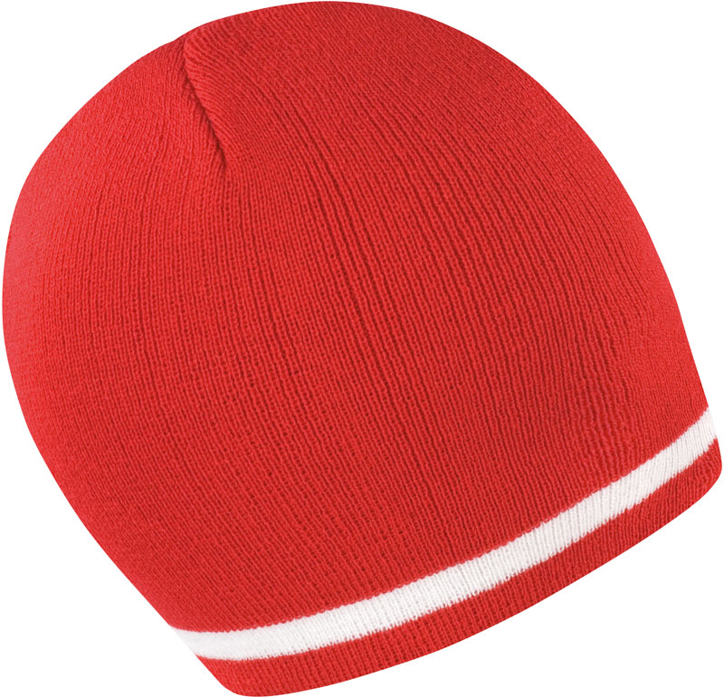 Strickmütze mit Streifen in Kontrastfarbe, Innen: einfarbig, abgestimmte Vereinsfarben, Material: 100% Polyacryl, Größe: onesize
