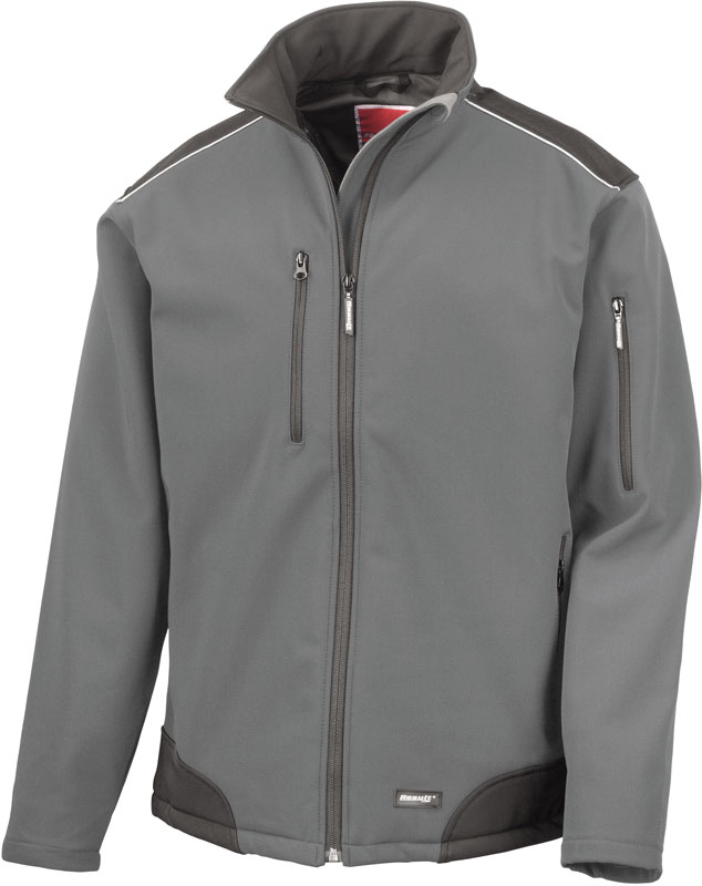 3-Lagen Softshell Ripstop Workwear Jacke, Wasserdicht (8.000mm Wassersäule), atmungsaktiv (1.000g/m² in 24h), Cordura® Einsätze auf Schultern und Ellbogen für zusätzliche Strapazierfähigkeit, YKK Reißverschluss vorne, Ärmeltasche, verstellbarer elastischer Kordelzug, Veredelungszugang an linker Brust, reflektierend an Schulterpasse (ohne Schutzfunktion), 40° waschbar, Schonwäsche, nicht bügeln, Material: 340g/m², 93% Polyester, 7% Elasthan, Mittelmembran, Größen: S,M,L,XL,XXL,3XL,4XL