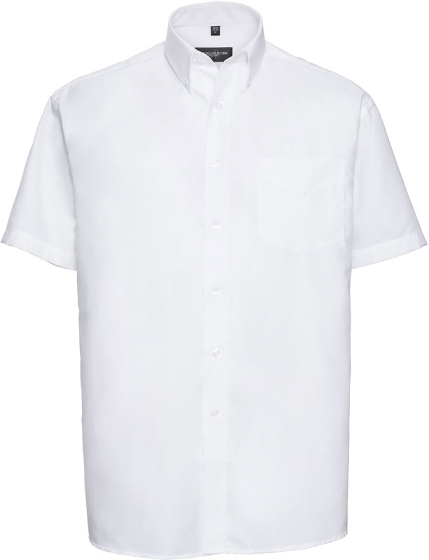 Oxford Hemd kurzarm, Klassischer Schnitt, Button-Down-Kragen, abgerundeter Bund, Ersatzknöpfe, V-förmig zulaufende Tasche auf linker Brust, rückwärtige Schulterpasse mit 2 an den Seiten eingelegten Falten, Easy Care, 40° waschbar, trocknergeeignet, Material: 135g/m², 70% Baumwolle, 30% Polyester Oxford, Größen: S,M,L,XL,XXL,3XL,4XL,5XL,6XL