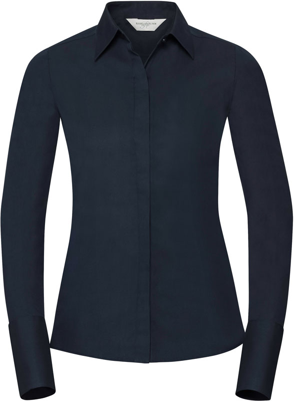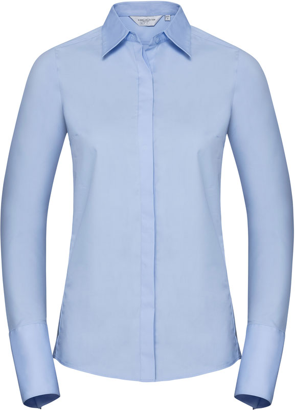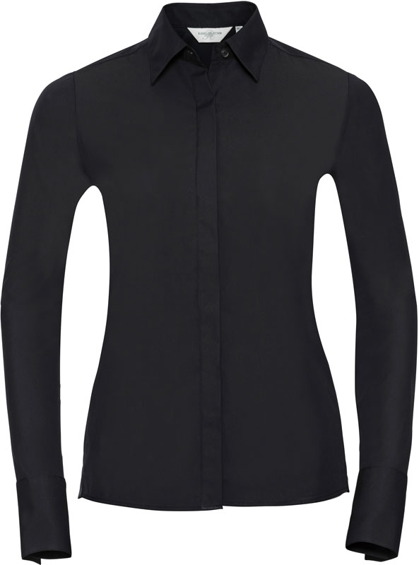 Ultimate Stretch Bluse langarm, Länger geschnitten, taillierter Schnitt, schlichter Kragen, verdeckte Knopfleiste, Cocktail Manschetten, Abnäher am Rücken, strapazierfähiges Material, ausgezeichnete Formbewahrung für anhaltenden Sitz, feuchtigkeitsregulierend, Easy Care, 40° waschbar, trocknergeeignet, keinen Weichspüler verwenden, Material: 130g/m², 75% Baumwolle, 25% Elastomultiester Faser Lycra® T400, Größen: XS,S,M,L,XL,XXL,3XL,4XL