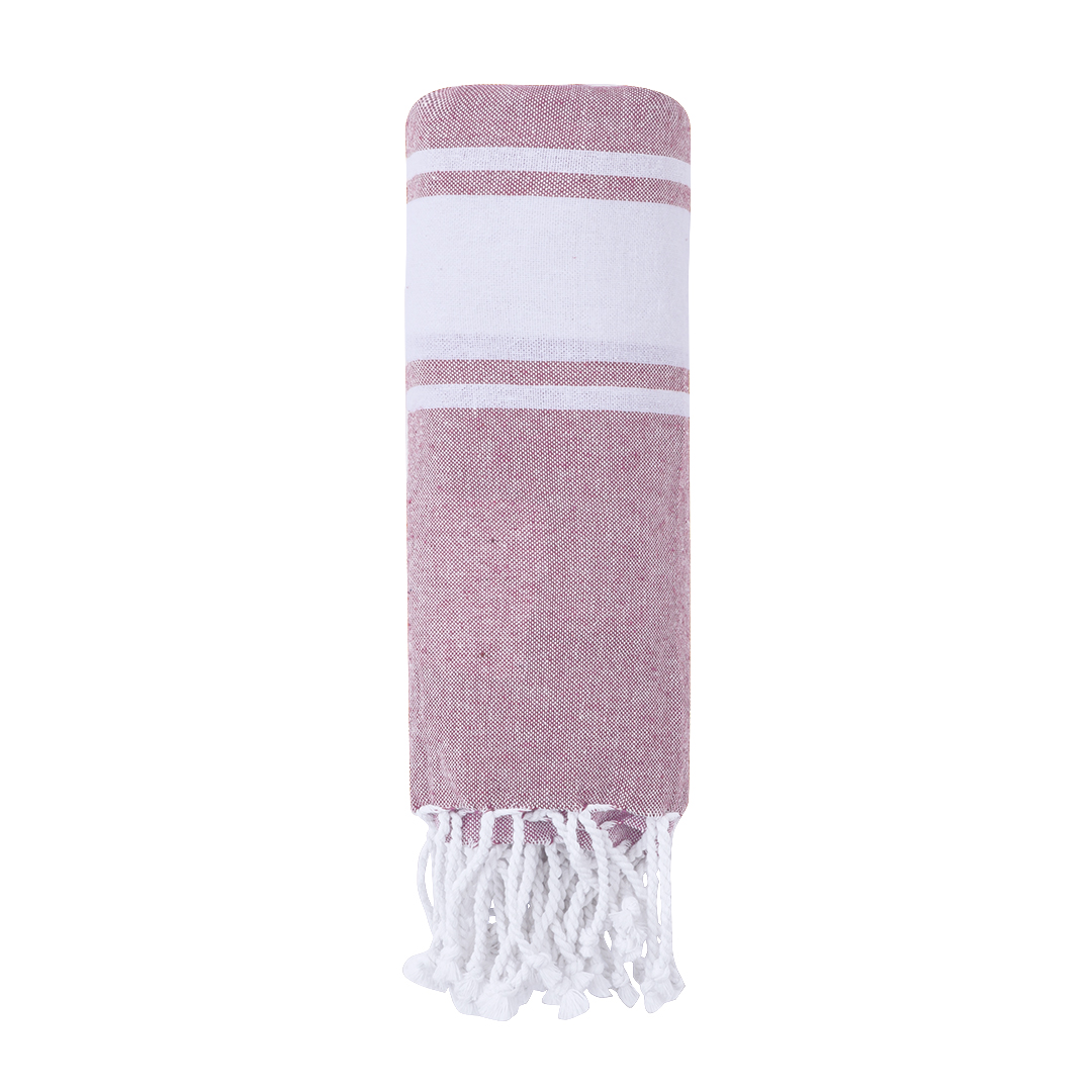 180x90cm Pareo Rucksack, hergestellt aus widerstandsfähiger recycelter Baumwolle 170g/m2 und in verschiedenen Farben. Mit einem speziellen Faltsystem für den einfachen Transport, das es in einen Rucksack mit Kordelzug verwandelt. Label für recycelte Baumwolle auf der Außenseite und in einer individuellen Tasche präsentiert.