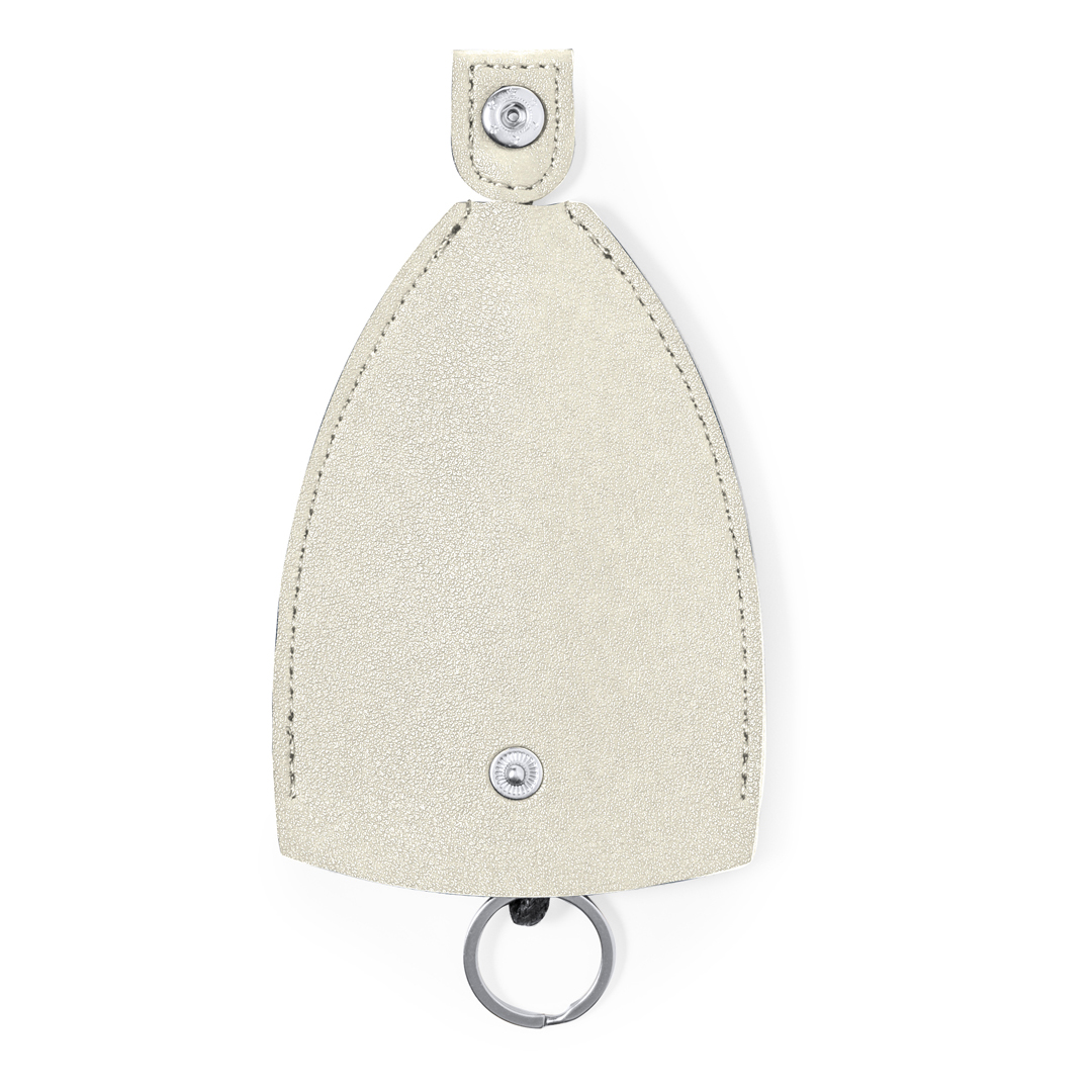 Cooler Schlüsselanhänger mit Tasche zum Schutz des Schlüssels. Mit Verschlussmechanismus durch Ziehen an der Schnur, mit Knopfverschluss. Erhältlich in einer großen Auswahl an Farben und präsentiert in einer recycelten Papiertüte.