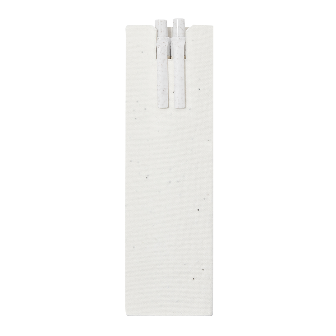 Set aus Kugelschreiber und ewigem Bleistift, hergestellt aus recycelten Milchkartons, präsentiert in einer Papiertasche mit Samen. Kugelschreiber mit blauer Tinte und Bleistift mit ewigem Ende, um so immer denselben Bleistift verwenden zu können und Abfall zu vermeiden, beide mit Druckmechanismus und passendem Clip aus Weizengras, mit geprägtem Zeichen. Mit dem Zeichen für recycelte Milchkartons am Körper. Die Tasche enthält Petuniensamen, wodurch sie am Ende ihrer Lebensdauer pflanzbares Papier wird. Enthält Anweisungen zum Pflanzen auf der Rückseite.Milchkartons bestehen größtenteils aus Karton und Aluminium. Während des Recyclingprozesses werden die verschiedenen Materialien der Verpackung getrennt, um sie wiederzuverwenden und neu zu nutzen, und tragen somit zur unendlichen Reise der Kreislaufwirtschaft bei. Dieses Material zeichnet sich durch seine hohe Recyclingfähigkeit, geringes Gewicht und Festigkeit aus.Weizengras fördert die Verwendung natürlicher Rohstoffe, wodurch die Schadstoffemissionen reduziert werden.