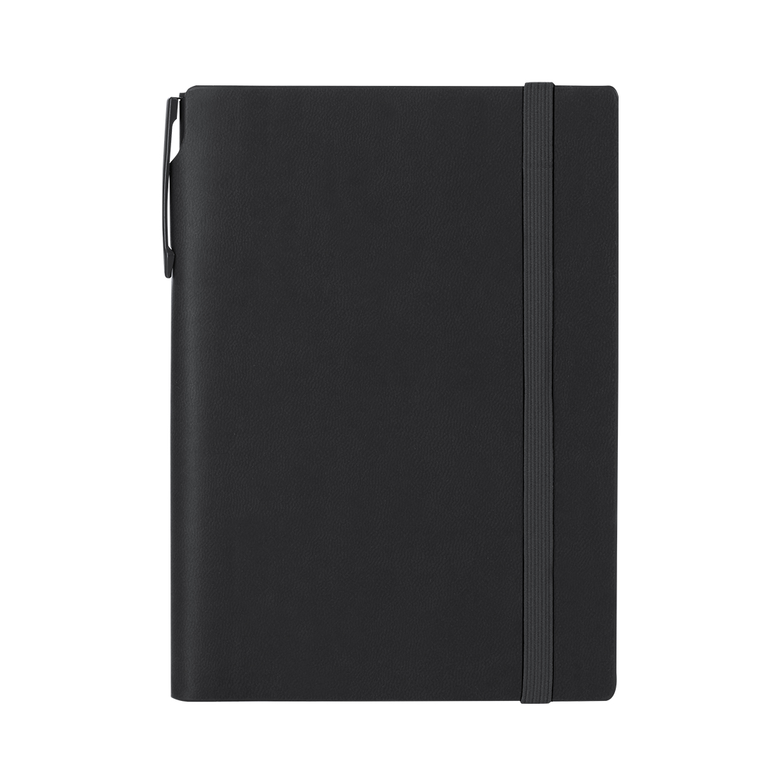 Set aus Notizblock und Stift aus recyceltem PU und recyceltem Aluminium. Das Set enthält: – Notizblock aus recyceltem PU. Die Hardcover-Ausgaben umfassen 96 cremefarbene Seiten, ein Lesezeichen und ein passendes elastisches Verschlussband. Mit recyceltem PU-Logo-Abzeichen. -Stift aus recyceltem Aluminium mit einem einfarbigen Korpus in Gummifinish. Sie hat einen Clip, einen Druckknopfmechanismus und blaue Tinte. Enthält ein Logo-Abzeichen aus recyceltem Aluminium. Das Pad hat einen Platz zum Aufbewahren des Stifts, sodass man alles an einem Ort aufbewahren kann.