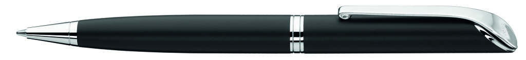 Metall-Drehkugelschreiber mit matter Oberfläche. Metallbeschlagteile glanzverchromt. Minenfarbe: blau
