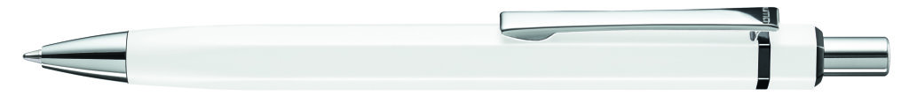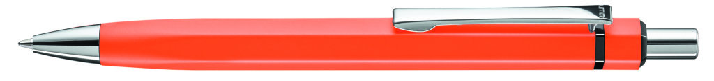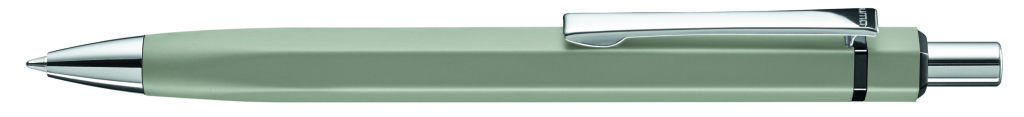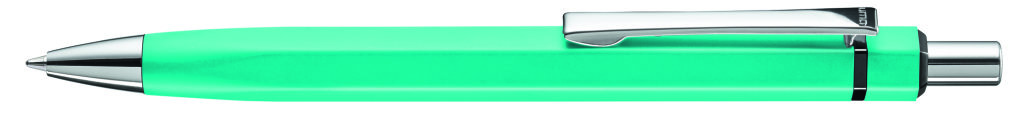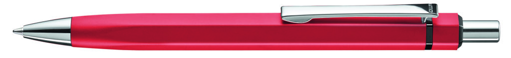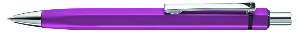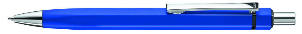Metall-Druckkugelschreiber mit matt lackiertem, sechskantigem Aluminiumschaft. Metallclip, Metallspitze und Drücker silber glänzend. Zierring schwarz glänzend. Minenfarbe: blau