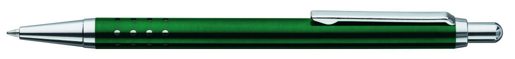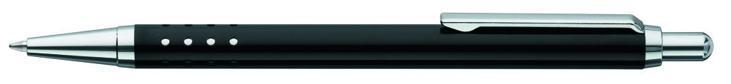 Metall-Druckkugelschreiber lackiert mit gelochter Griffzone. Metallbeschlagteile glanzverchromt. Minenfarbe: schwarz