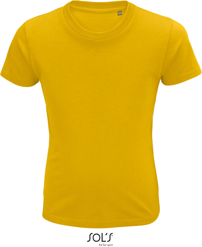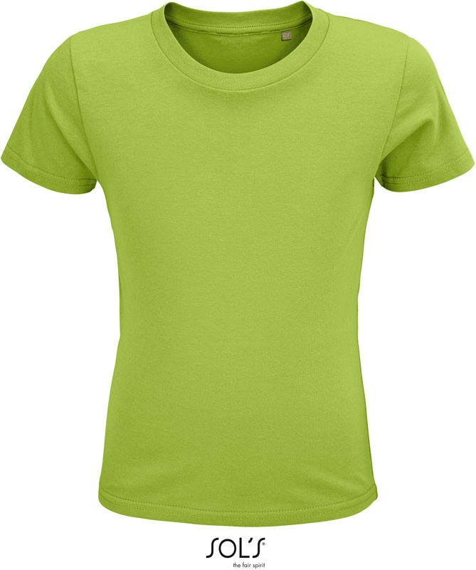 Kinder Bio T-Shirt, Leicht taillierter Schnitt, Seitennähte (2-8 Jahre) oder Rundstrickware (ab 10 Jahren), Rundhalsausschnitt aus Rippstrick, Nackenband, 40° waschbar, nicht trocknergeeignet, Material: 150g/m², 100% zertifizierte Bio-Baumwolle, enzymgewaschen, Größen: 2 Y,4 Y,6 Y,8 Y,10 Y,12 Y