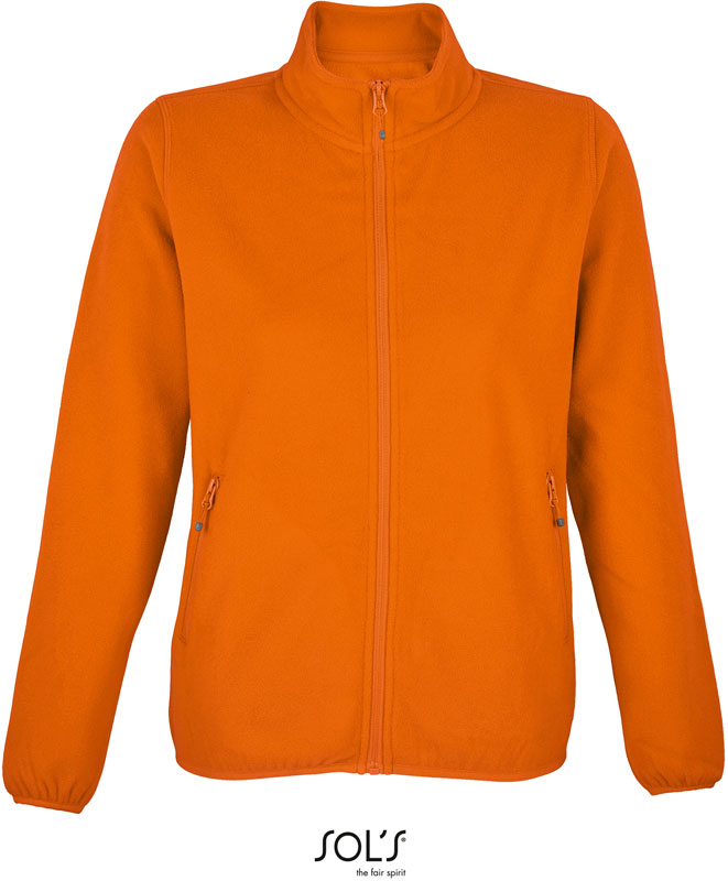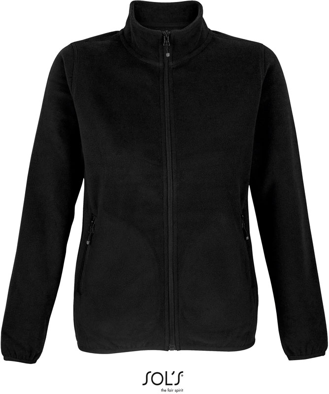Damen Fleece Jacke, Nackenband, elastischer Bund und Ärmelabschluss, 2 Seitentaschen mit Reißverschluss, angenehmes Stretchfleece, TearAway Label, 30° waschbar, nicht trocknergeeignet, Material: 280g/m², 100% recyceltes Polyester (rPET), Größen: S,M,L,XL,XXL,3XL