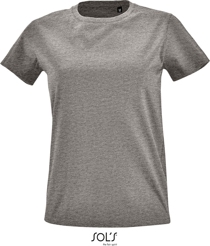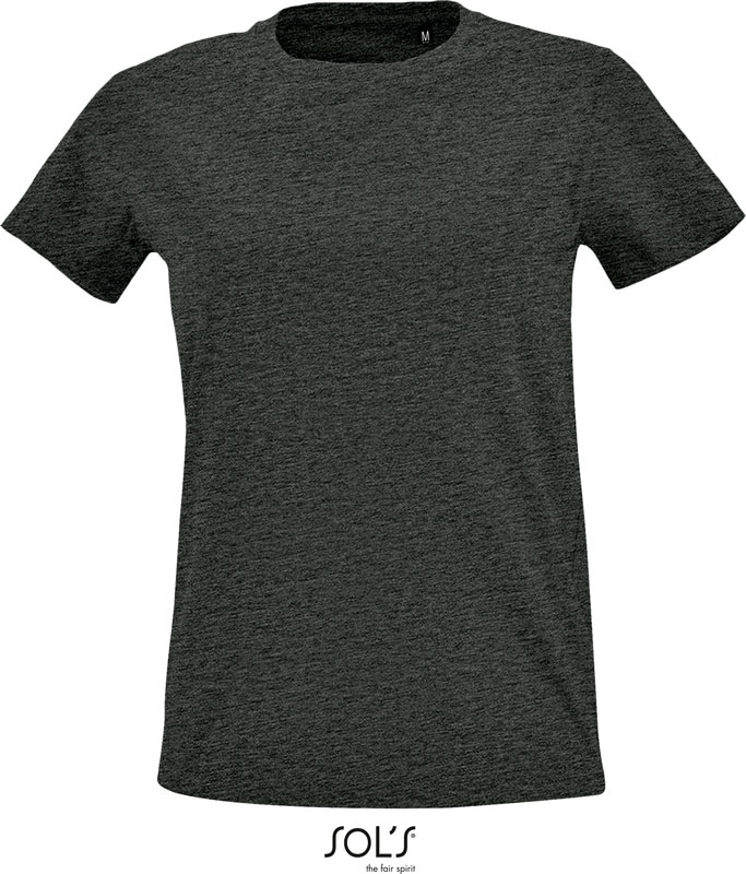 Damen Slim Fit T-Shirt, Taillierter Schnitt, weiter Rippstrickausschnitt, Nackenband, TearAway Label, neutrales Größenlabel, 40° waschbar, nicht trocknergeeignet, Material: 190g/m², 100% halbgekämmte ringgesponnene Baumwolle, grey melange: 85% ringgesponnene Baumwolle, 15% Viskose, charcoal mel./heather oxblood/heather denim/heather khaki: 60% ringgesponnene Baumwolle, 40% Polyester, Single Jersey, Größen: S,M,L,XL,XXL