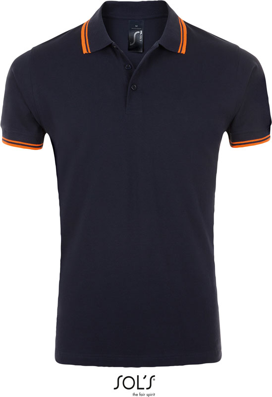 Herren Piqué Polo, Taillierter Schnitt, flacher Strickkragen, 3er Knopfleiste, Seitenschlitze, Streifen in Kontrastfarbe an Schultern und Ärmel, 40° waschbar, nicht trocknergeeignet, Material: 200g/m², 100% ringgesponnene Baumwolle, melange grey/orange: 85% Baumwolle, 15% Viskose, Größen: S,M,L,XL,XXL,3XL