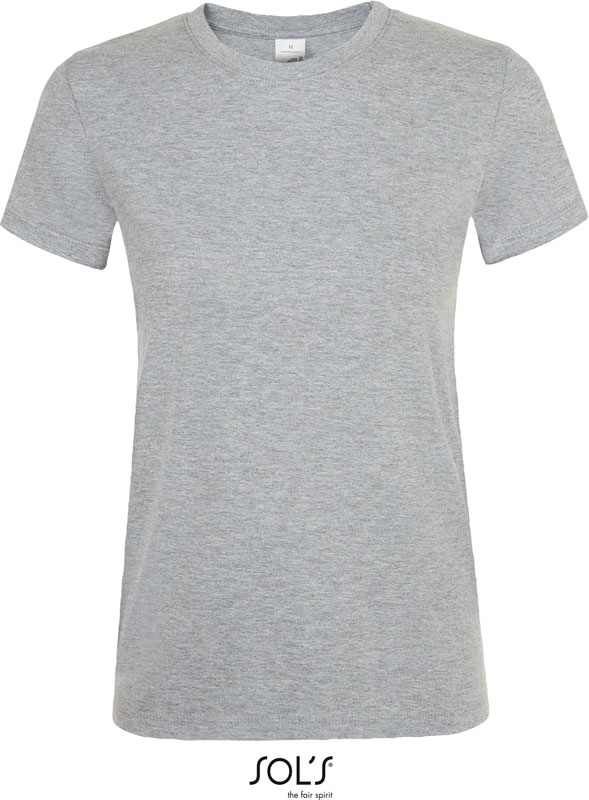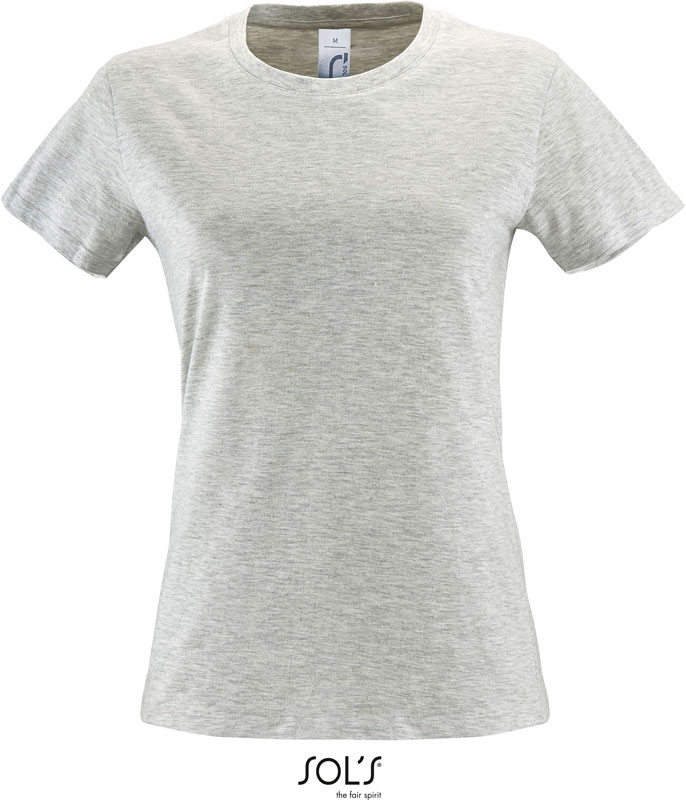 Damen T-Shirt, Taillierter Schnitt, Rippstrickausschnitt, Nackenband, feminine kurze Ärmel, 40° waschbar, nicht trocknergeeignet, Material: 150g/m², 100% halbgekämmte ringgesponnene Baumwolle, Single Jersey, ash: 98% Baumwolle, 2% Viskose, grey melange: 85% Baumwolle, 15% Viskose, Größen: S,M,L,XL,XXL,3XL