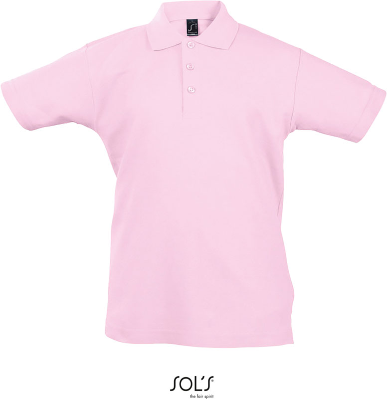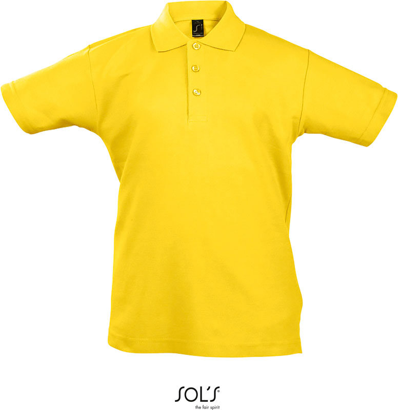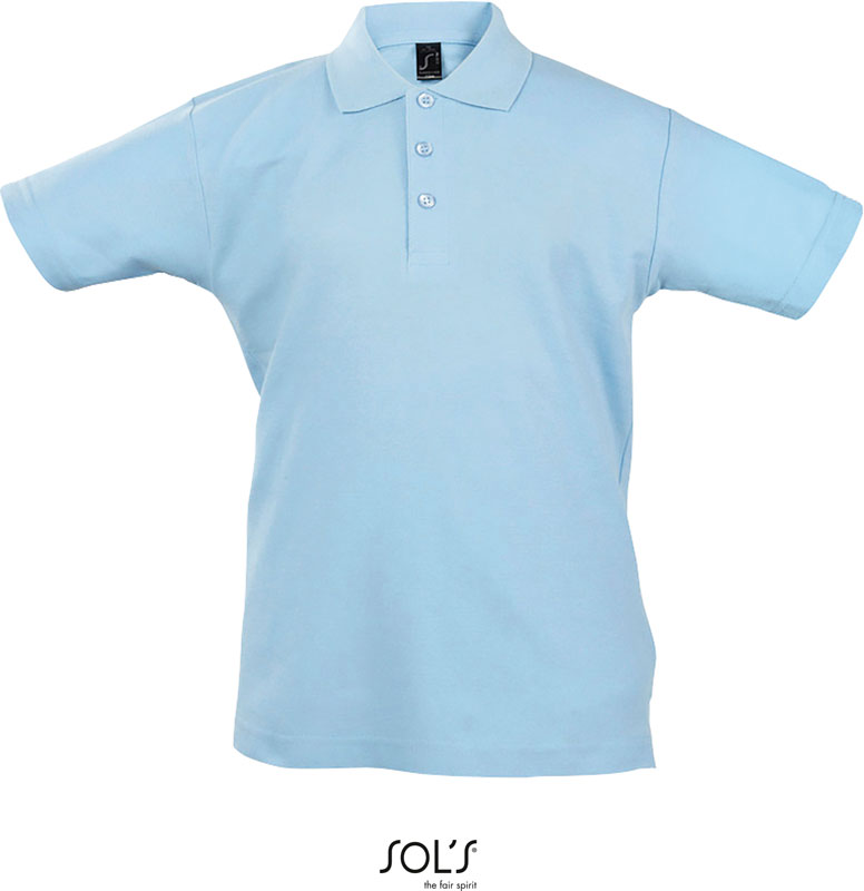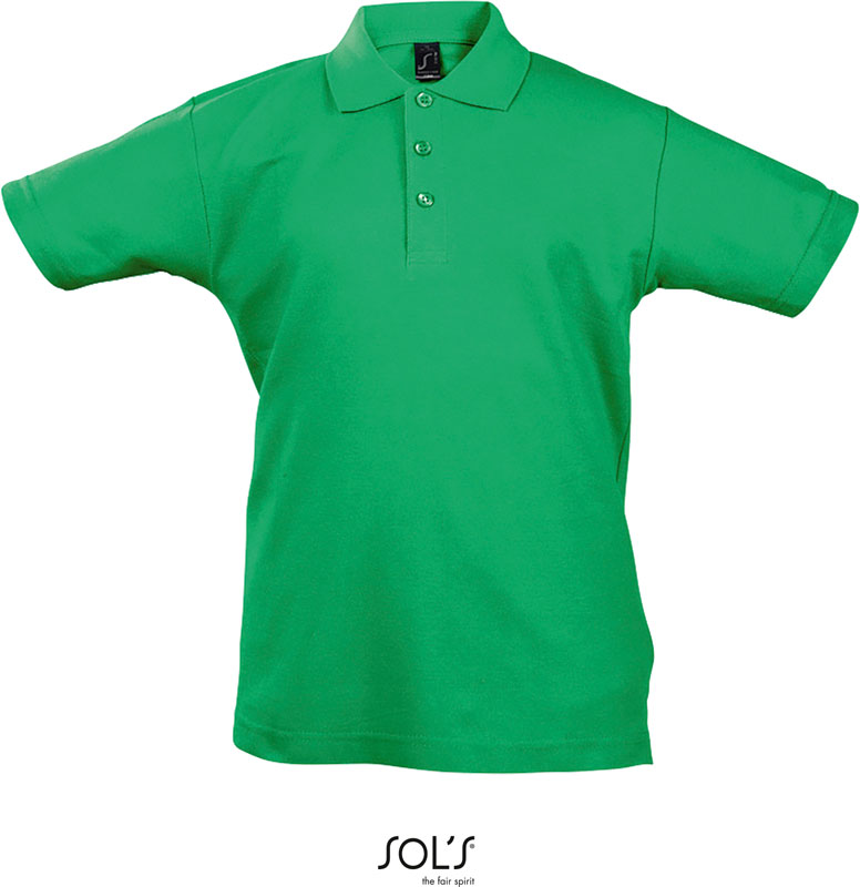 Kinder Piqué Polo, 1×1 Rippstrick Kragen, 3er Knopfleiste mit Knöpfen Ton-in-Ton, Nackenband verstärkt, gerader Bund mit Seitenschlitzen, Material: 170g/m², 100% gekämmte ringgesponnene Baumwolle, Größen: 4 Y,6 Y,8 Y,10 Y,12 Y