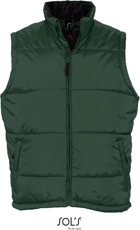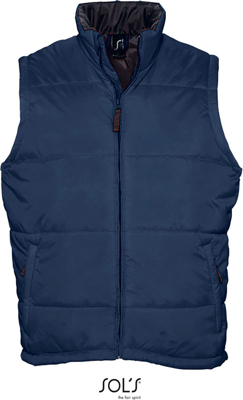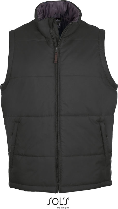 Gesteppter Bodywarmer, Wasserabweisend, 2 Seitentaschen, Veredelungszugang im Futter, winddicht, 30° waschbar, Schonwäsche, nicht trocknergeeignet, Material: Außen: 100% 210T Polyamid, AC Beschichtung, Futter: 100% 190T Polyester, Kragen und Körper mit dunkelgrauem kontrastierenden 190T Nylon gefüttert, Wattierung: 220g/m² Polyester Wattierung, Größen: S,M,L,XL,XXL,3XL,4XL,5XL