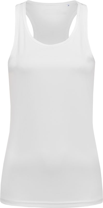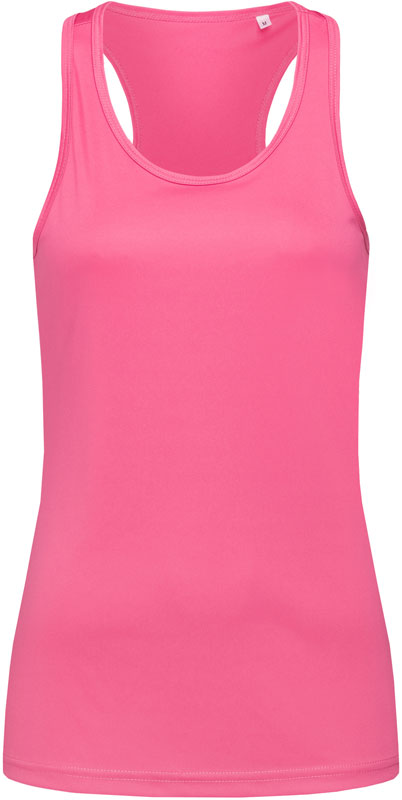 Damen Interlock Sport T-Shirt ärmellos, Taillierter Schnitt, schmal eingefasster Ausschnitt und Ärmel, Flatlock-Schulternähte, Ringerrücken, weiches leicht glänzendes Material, reflektierendes ACTIVE-DRY® Logo (ohne Schutzfunktion) hinten, neutrales Größenlabel, 40° waschbar, trocknergeeignet bei niedriger Temperatur, chemische Reinigung mit einem beliebigen Lösungsmittel außer Trichlorethylen, Material: 140g/m², 100% ACTIVE-DRY° Polyester, Interlock, Größen: S,M,L,XL