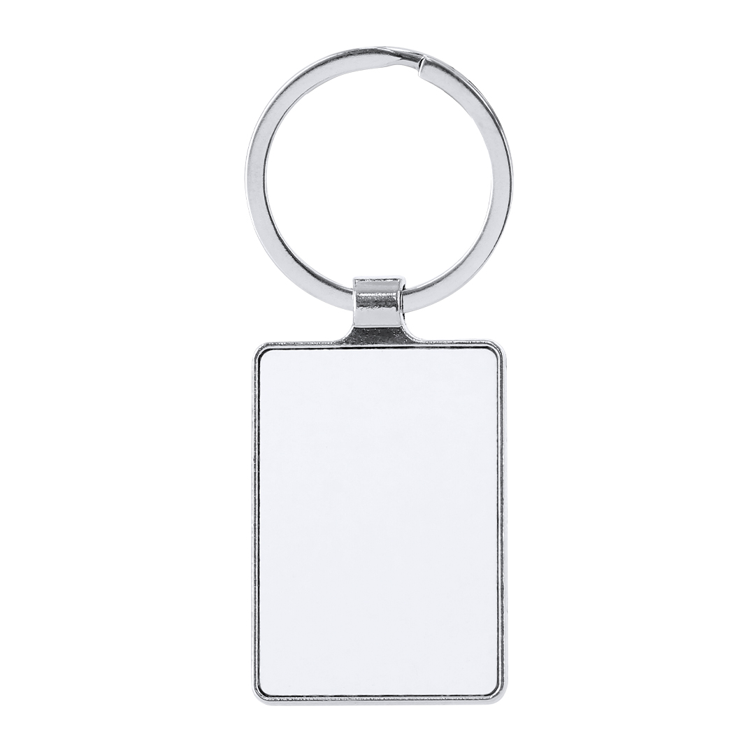 Schlüsselanhänger mit Metallplattendesign und Metallring. Die Platte enthält eine Oberfläche, die ideal für Sublimation ist.