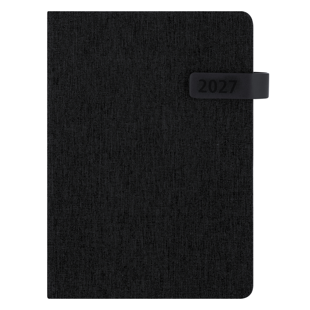 A5-Agenda aus recyceltem RPET-Polyester. Mit stabilen Hardcover-Einbänden im zweifarbigen Design, PU-Magnetverschluss und farblich abgestimmtem Lesezeichen. Tagesseiten-Layout mit zusätzlichem Notizbereich. Zweisprachige Ausgabe: Spanisch und Englisch. Jede Agenda wird einzeln verpackt geliefert. Das RPET-Material wird aus recyceltem Kunststoff hergestellt und fördert so die Wiederverwendung von Abfällen und die Nachhaltigkeit unseres Planeten.