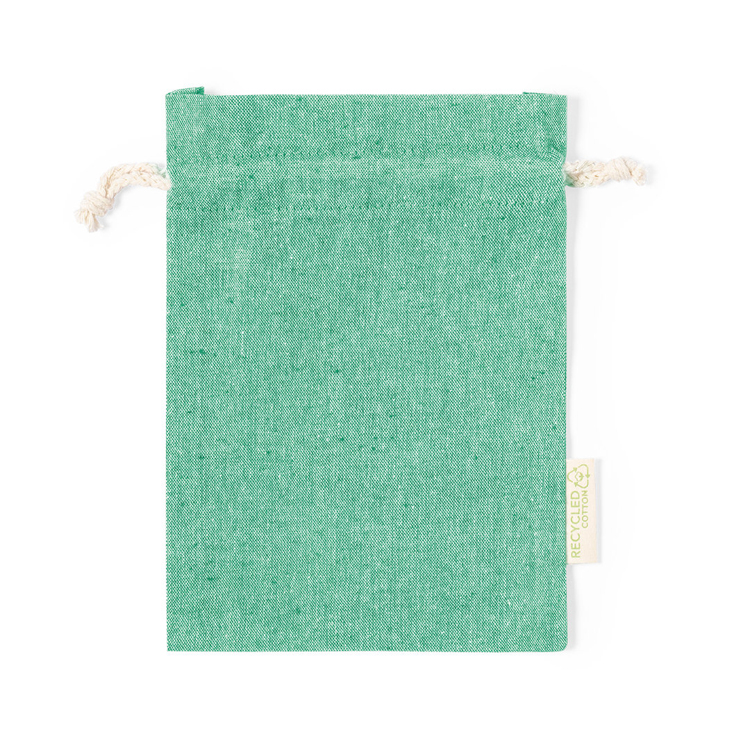 Umweltfreundliche Tasche aus widerstandsfähigem, recyceltem Baumwollmaterial von 120 g/m2. GRS-Zertifizierung (Global Recycled Standard), die die recycelte Herkunft des für die Herstellung des Produkts verwendeten Materials garantiert. Kordelzugverschluss aus Baumwolle und genähtes Finish, einschließlich Außenetikett mit Logo aus recycelter Baumwolle.