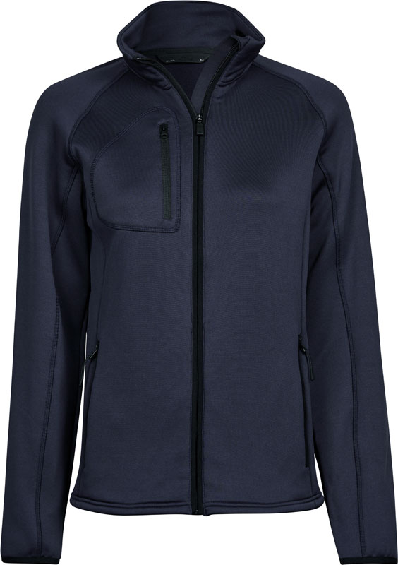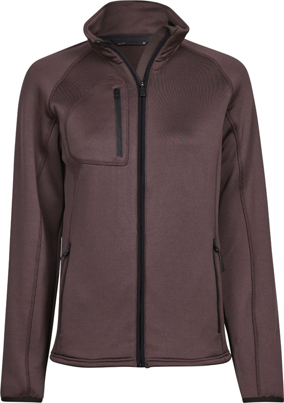 Damen Stretch Fleece Jacke, Taillierter Schnitt, Stehkragen mit Kinnschutz, elastische Bündchen an Arm- und Bundabschluss, SBS Reißverschlüsse, Brusttasche mit Reißverschluss, 2 Seitentaschen mit Reißverschluss, glatte Oberfläche, innen angeraut, Material: 235g/m², 90% Polyester, 10% Elasthan, Größen: S,M,L,XL,XXL,3XL