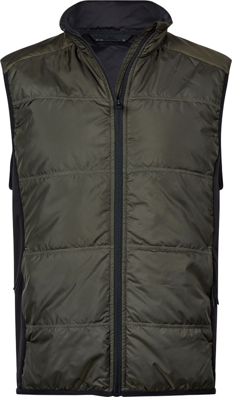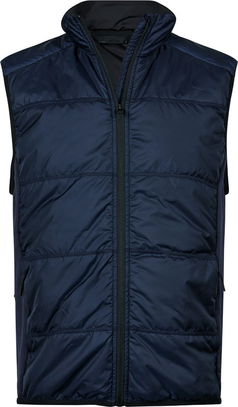 Herren Hybrid Stretch Bodywarmer, Taillierter Schnitt, Stehkragen, elastischer Bund und Ärmelabschluss, SBS Reißverschlüsse, 2 Seitentaschen mit Reißverschluss, Innentasche, elastische Einsätze an den Seiten, Veredelungszugang an Rücken und linker Brust, Material: Außen: 100% 300T Polyester, 380T Polyester Futter, Wattierung: 100% Polyester DuPont™, Ärmel: 90% Polyester, 10% Elasthan, Größen: XS,S,M,L,XL,XXL,3XL
