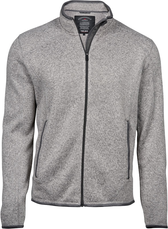 Herren Melange Strickfleece Jacke, Taillierter Schnitt, Stehkragen, Säume mit Trikotstoff eingefasst, 2 Seitentaschen mit Reißverschluss, Flatlock-Nähte, Melange-Strickoptik, weiches Fleece innen, Material: 280g/m², 100% Polyester Strickfleece, Größen: S,M,L,XL,XXL,3XL