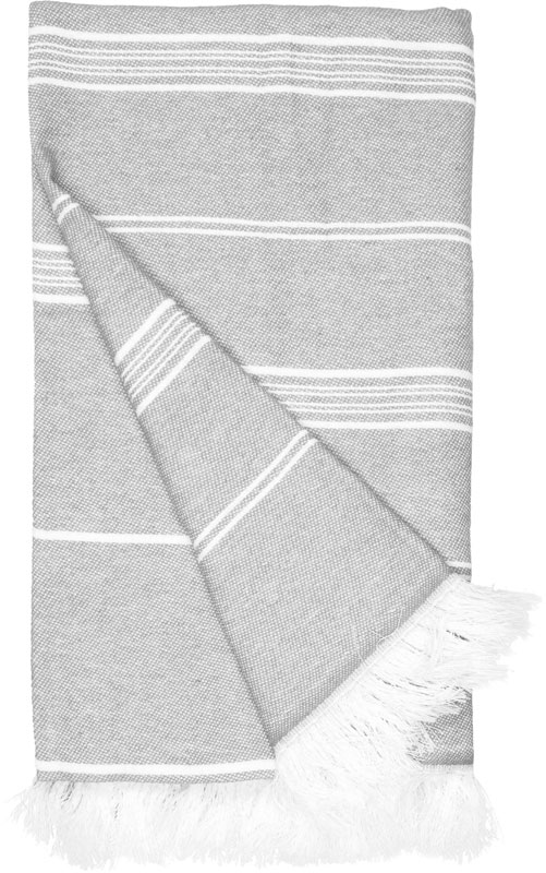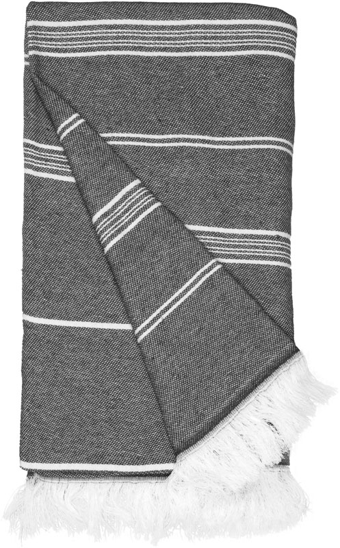Hamamtuch, Streifen-Design, gedrehte Fransen, leicht und schnelltrocknend, Maße: 100x180cm, 30° waschbar, nicht trocknergeeignet, wird aufgerollt mit einer recycelten Baumwollkordel geliefert, Material: 300g/m², 60% recycelte Baumwolle, 40% recyceltes Polyester, Größe: onesize