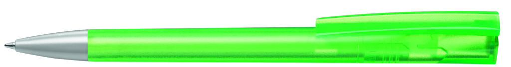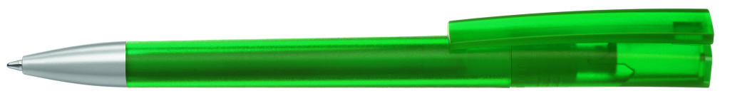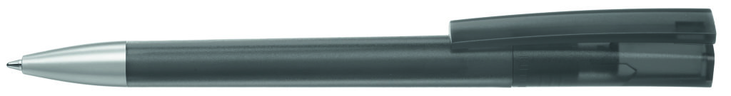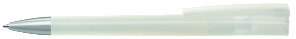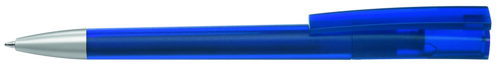 Drehkugelschreiber mit transparent gefrostetem Gehäuse und Stopfen optional in verschiedenen matt gedeckten Farben oder silber erhältlich. Schwere Metallspitze matt verchromt. BlackForestPen – Designed in Deutschland, gefertigt in der Schweiz, zusammengefügt und veredelt im Schwarzwald. Minenfarbe: blau