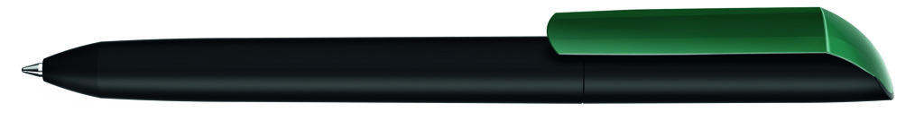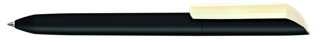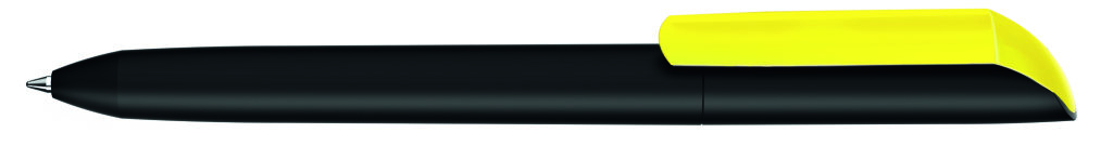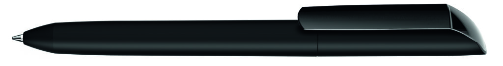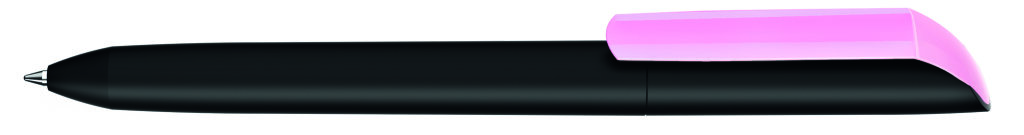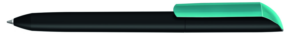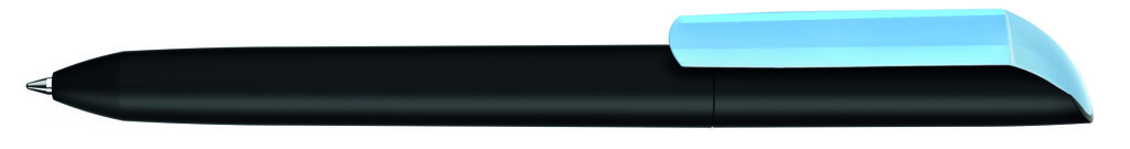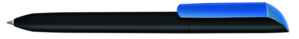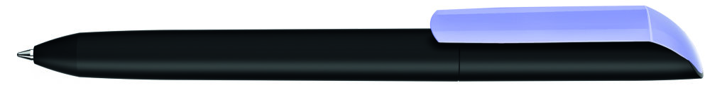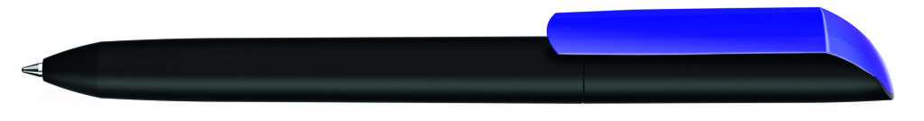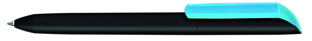Drehkugelschreiber mit Softtouch-Gehäuse in schwarz und gedeckt glänzendem farbigem Clip. Minenfarbe: blau