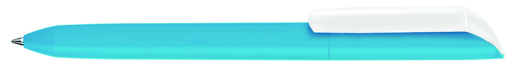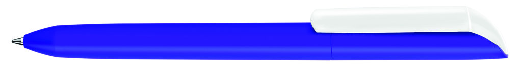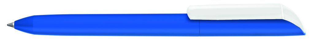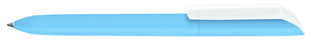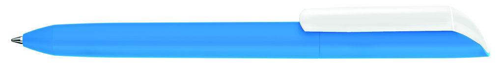 Drehkugelschreiber mit Softtouch-Gehäuse und gedeckt glänzendem Clip in weiß. Minenfarbe: blau