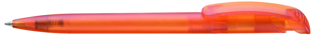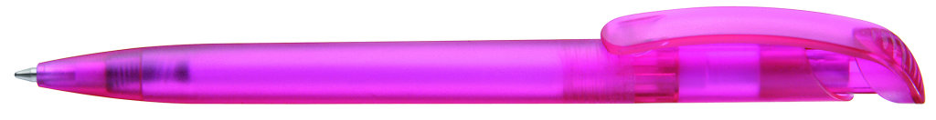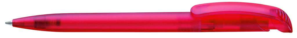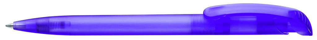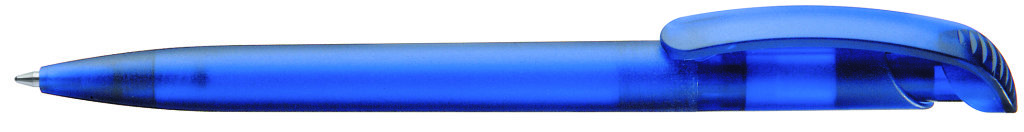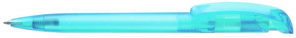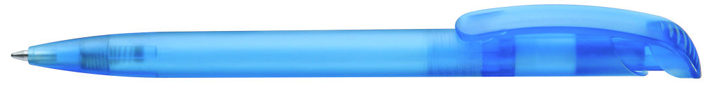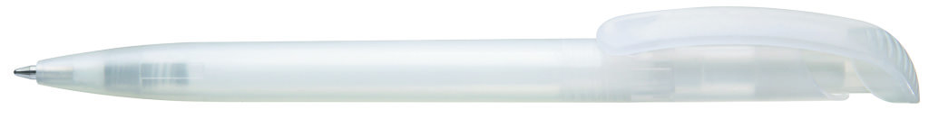 Druckkugelschreiber mit transparent gefrostetem Gehäuse und Bogenclipdrücker. Minenfarbe: blau