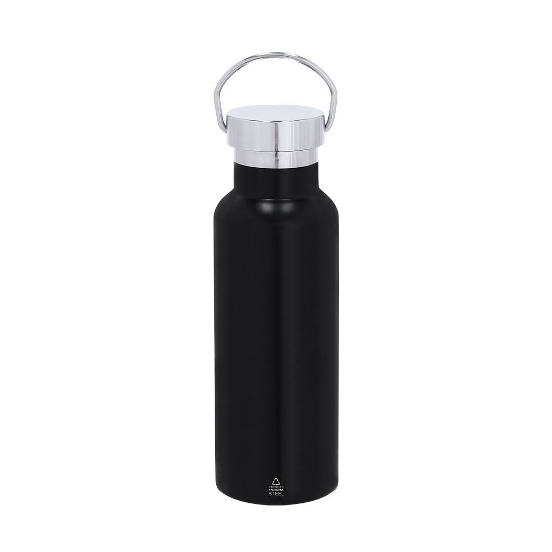 Thermobehälter aus recycled Edelstahl mit einer Kapazität von 500 ml. Mit doppelter Wand für bessere und langlebigere Temperaturhaltung und keramischer Innenbeschichtung, geeignet für kohlensäurehaltige Getränke. Schraubverschluss mit stabilem Tragegriff aus poliertem Edelstahl. Mit Auszeichnung für recycelten Edelstahl.Edelstahl ist eines der am meisten nachgefragten Materialien und kann fast überall gefunden werden, von Alltagsprodukten bis hin zu großen Bauwerken. Mit zahlreichen Eigenschaften, darunter die Langlebigkeit und die hohe Wiederverwendbarkeit, ist er eine sehr geschätzte Alternative für nachhaltige Lösungen. Gut behandelt ermöglicht es, neue Ressourcen mit unendlichem Nutzen zu gewinnen.