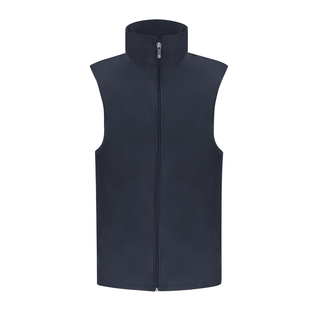 Unisex-Weste aus leichtem, atmungsaktivem Stoff mit weißem Mesh-Futter. Passender Frontreißverschluss und silberner Zipper, mit einer Außentasche auf jeder Seite.
