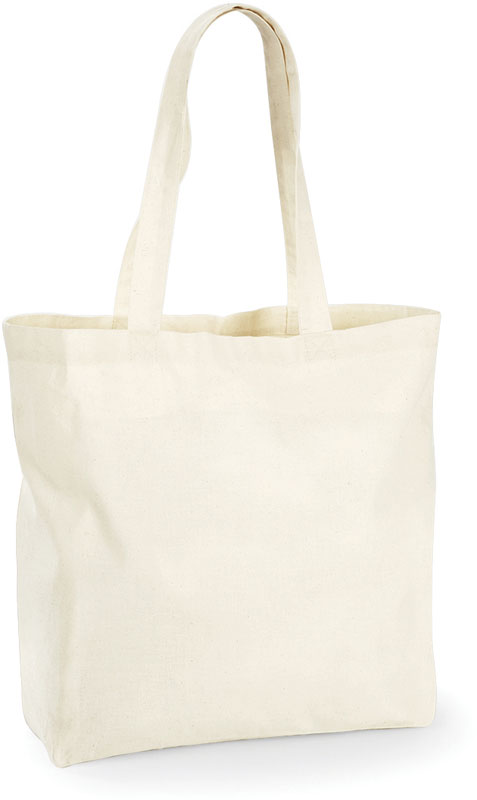 Maxi Baumwolltasche, 2 lange Tragegriffe (Länge 58cm), Fassungsvermögen: 18l, Maße: 35x39x13,5cm, nur mit einem Schwamm reinigen, nicht waschen, Material: 140g/m², 100% Baumwolle, Größe: onesize