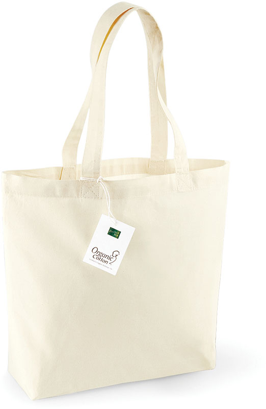 Bio Baumwolltasche, 2 lange Tragegriffe, Tragegrifflänge: 58cm, Fassungsvermögen: 16l, Maße: 32x35x12cm, nur mit einem Schwamm reinigen, nicht waschen, Material: 170g/m², 100% zertifizierte Bio-Baumwolle, Größe: onesize