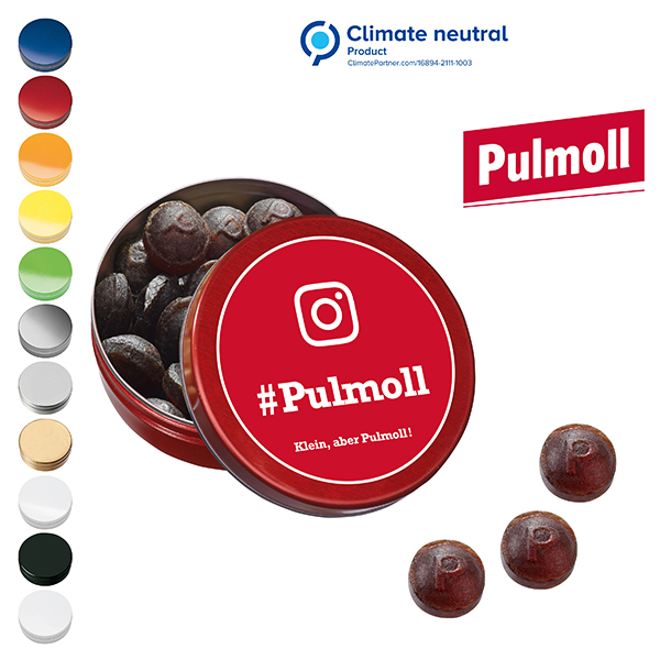 Metalldose aus 99 % recyclebarem Weißblech in 11 Farben und 10 verschiedenen Füllvarianten, wiederbefüllbar, einzeln gesleevt mit Aufreißhilfe.