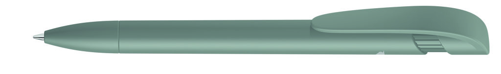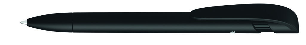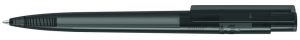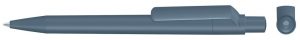 Druckkugelschreiber mit gedeckt mattem Gehäuse, breitem Bogenclipdrücker und Spitze aus recyceltem Kunststoff. Das Modell ist mit dem Recyclingzeichen gekennzeichnet. Aufgrund der Besonderheit des Materials (ABS Recycled Plastic) sind produktionstechnische Farbschwankungen gegeben. Minenfarbe: blau