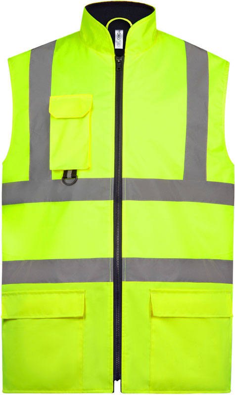 Hi-Vis Wattierter Bodywarmer, 3-lagiges Material, wasserabweisend, Brusttasche, Veredelungszugang, D-Ring für Ausweiskarten, zertifiziert nach EN ISO 20471 Klasse 2, orange zusätzlich RIS-3279-TOM zertifiziert, garantierte Reflektionseigenschaft gemäß EN-Norm für 25 Waschgänge, 40° waschbar, Material: 300D Oxford Polyester mit PU-Beschichtung, Polyester Wattierung, Futter: 180g/m², Polyester Fleece, Größen: S,M,L,XL,XXL,3XL