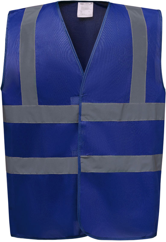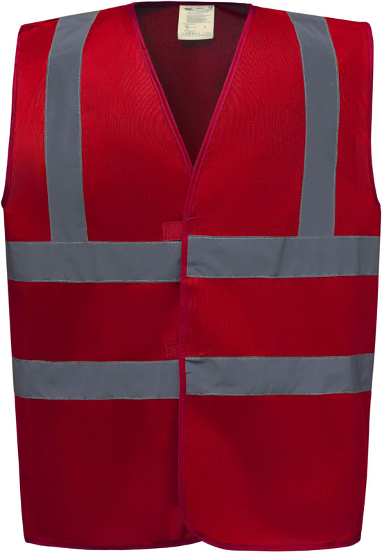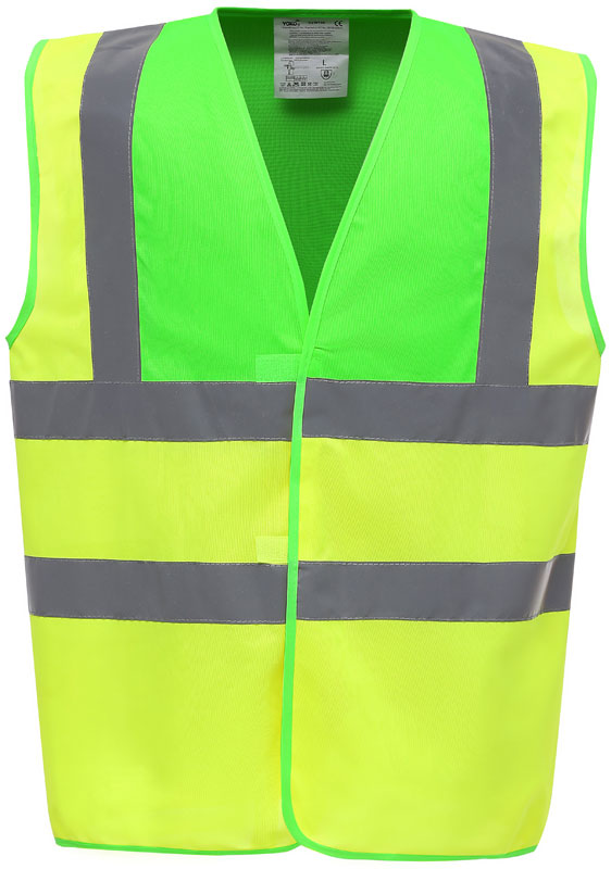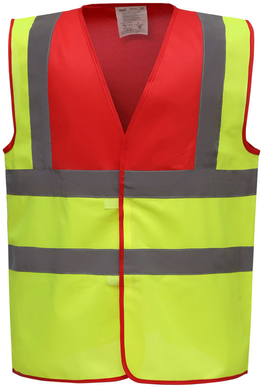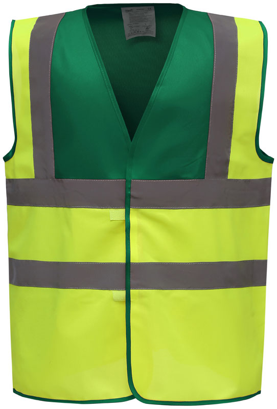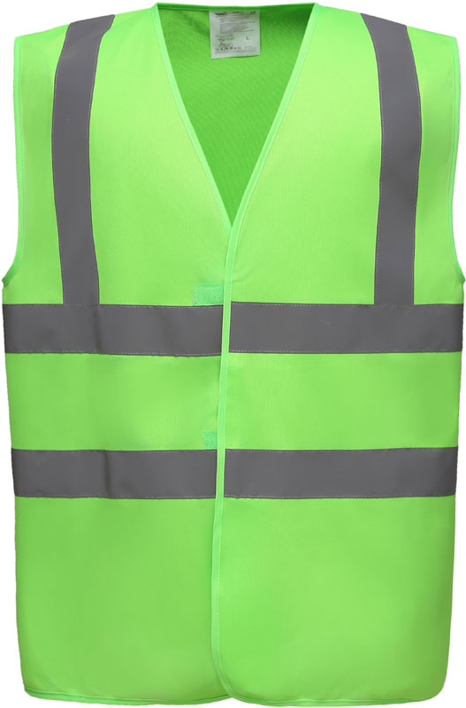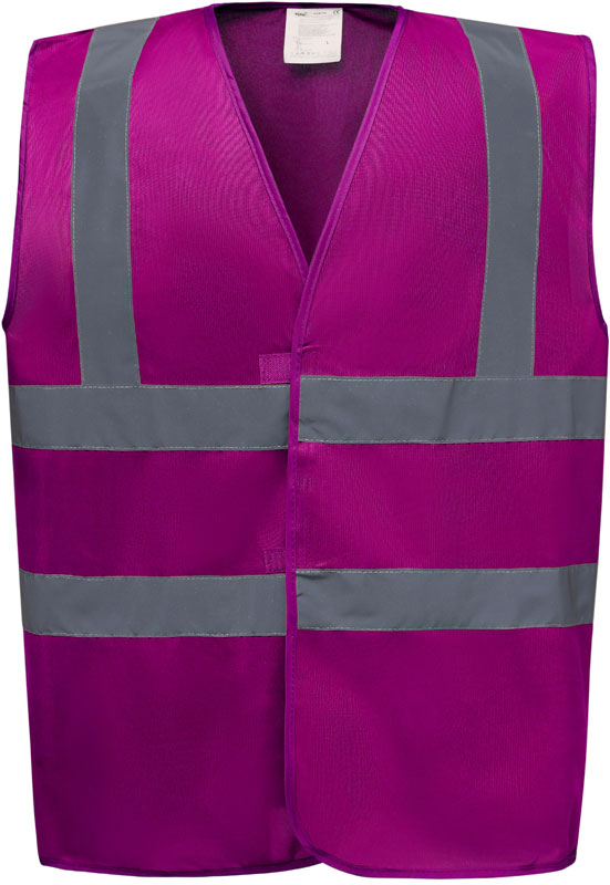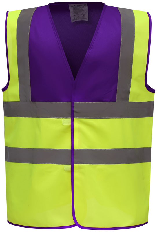 Hi-Vis Warnweste, Rundstrickware, Klettverschluss, Hi-Vis Farben zertifiziert nach EN ISO 20471 Klasse 2, black, lime, navy, purple, paramedic green, red, raspberry, royal blue/hi-vis yellow EN ISO 20471:2013 Klasse 1 zertifiziert, sonstige Farben ermöglichen erhöhte Sichtbarkeit, garantierte Reflektionseigenschaft gemäß EN-Norm für 25 Waschgänge, je 1 Reflexstreifen über jeder Schulter, zwei 5cm breite Reflexstreifen um den Körper, 40° waschbar, Material: 120g/m², 100% recyceltes Polyester, Größen: S,M,L,XL,XXL,3XL,4XL,5XL,6XL