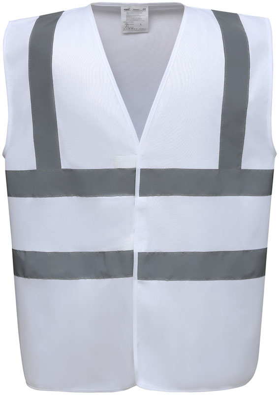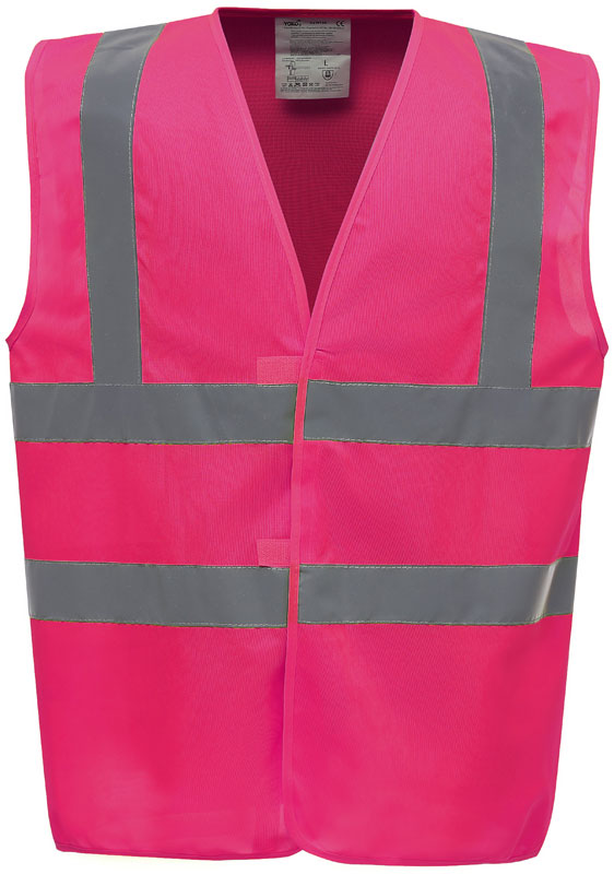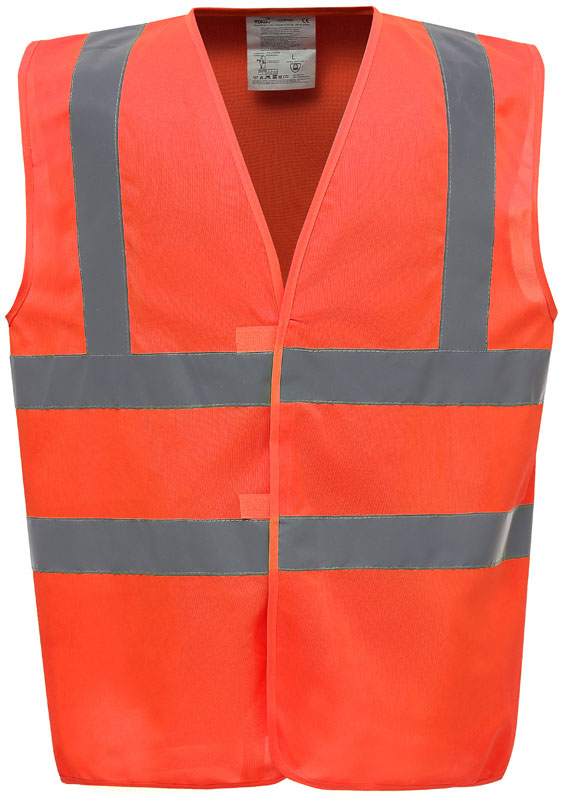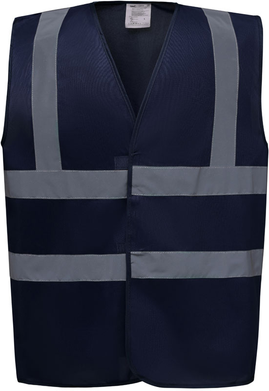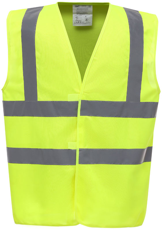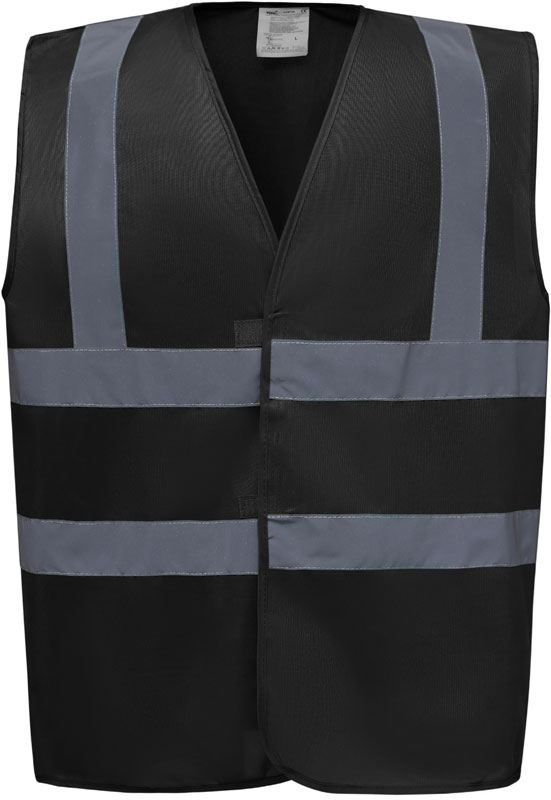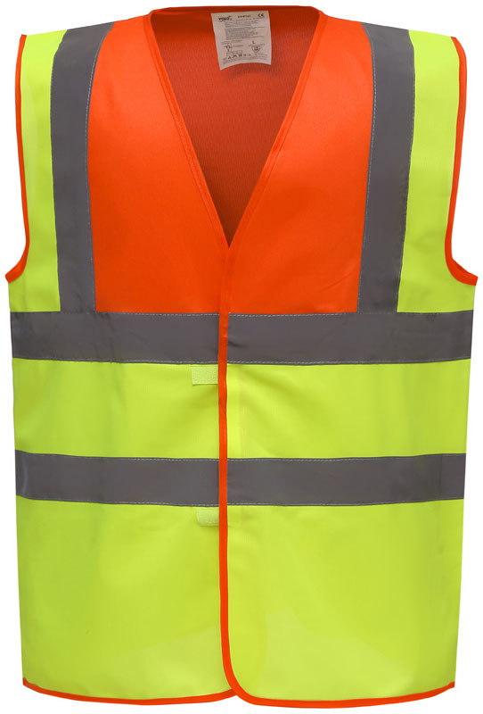 Hi-Vis Warnweste, Rundstrickware, Klettverschluss, Hi-Vis Farben zertifiziert nach EN ISO 20471 Klasse 2, black, lime, navy, purple, paramedic green, red, raspberry, royal blue/hi-vis yellow EN ISO 20471:2013 Klasse 1 zertifiziert, sonstige Farben ermöglichen erhöhte Sichtbarkeit, garantierte Reflektionseigenschaft gemäß EN-Norm für 25 Waschgänge, je 1 Reflexstreifen über jeder Schulter, zwei 5cm breite Reflexstreifen um den Körper, 40° waschbar, Material: 120g/m², 100% recyceltes Polyester, Größen: S,M,L,XL,XXL,3XL,4XL,5XL,6XL